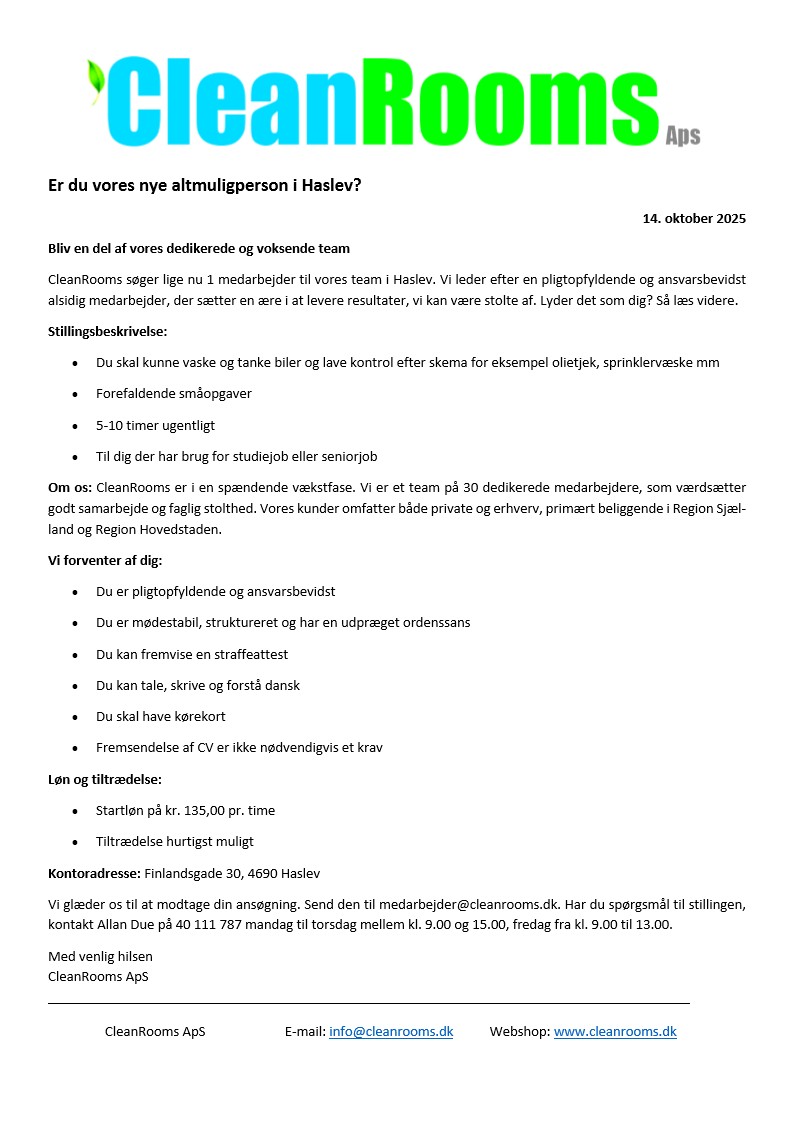 Fysisk butik Finlandsgade 30, 4690 Haslev.: