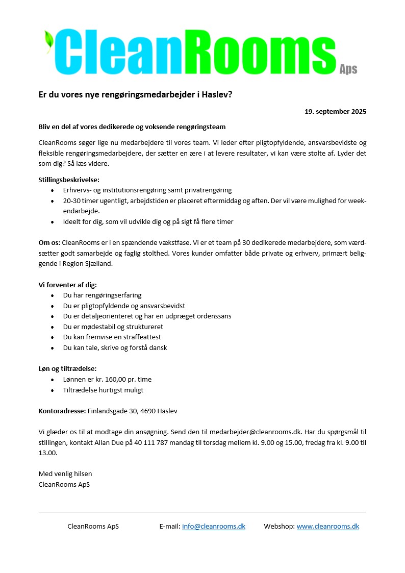 Fysisk butik Finlandsgade 30, 4690 Haslev.:
